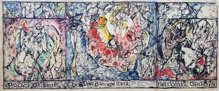 Plasschaert is one of the earliest abstract working artists in the Netherlands. On intuition and feeling he tries to arrive at an essential truth in his works through psychic expressionism. From time to time semi-figurative elements can be found in his largely abstract images. Characteristic in the work of Albert August Plasschaert is that he provides all his works with a title and an opus number. Stedelijk Museum curator Geurt Imanse wrote a publication about Plasschaert and his work.