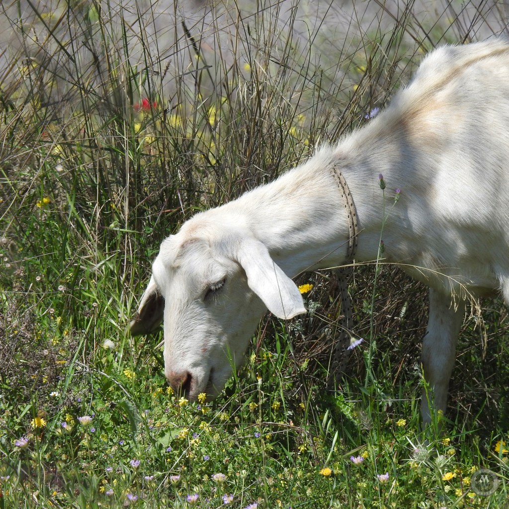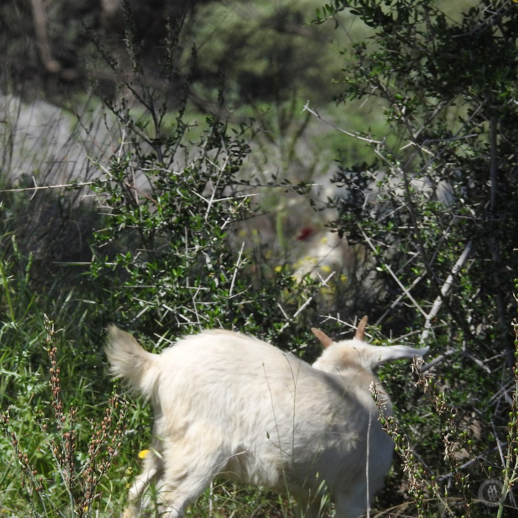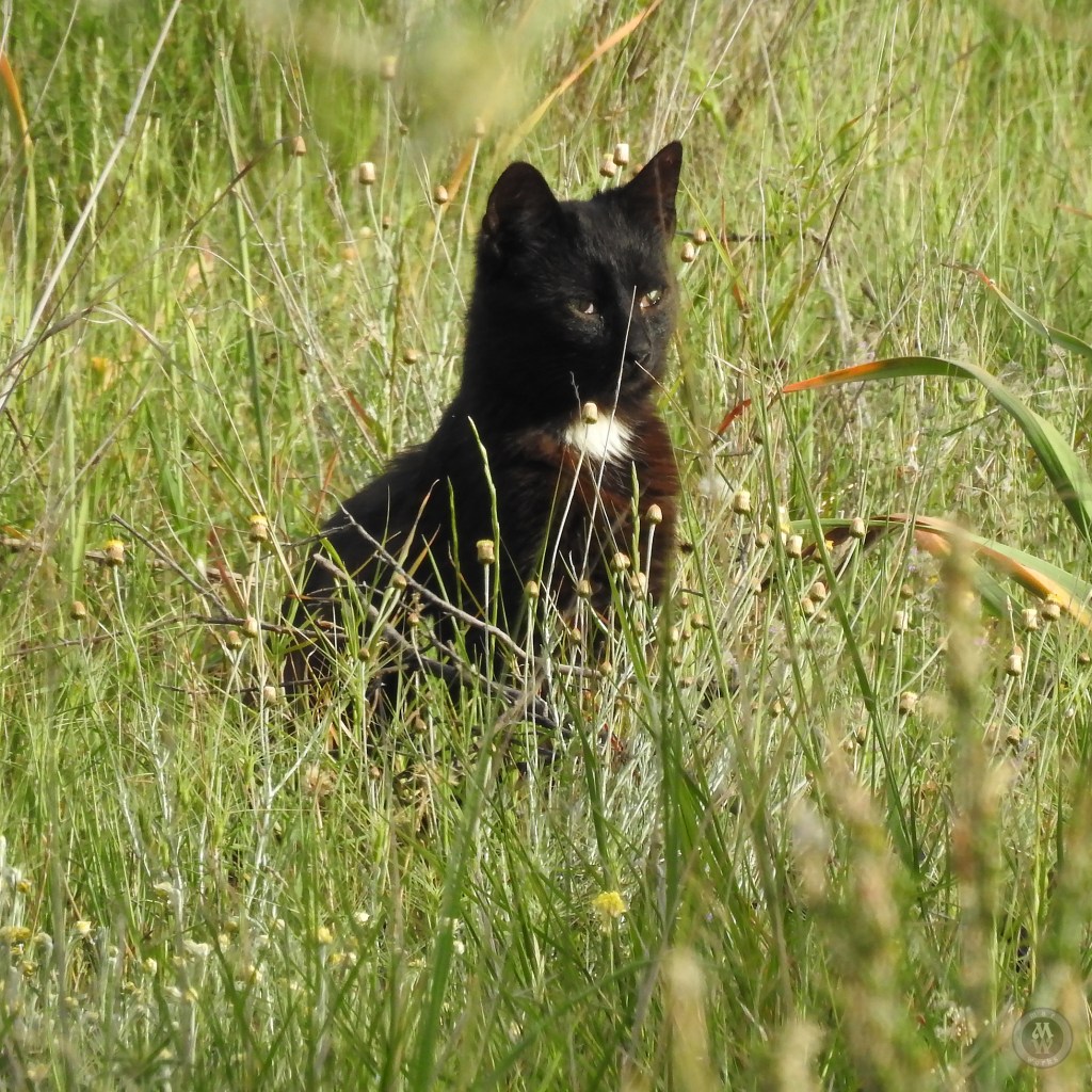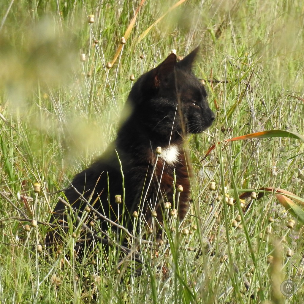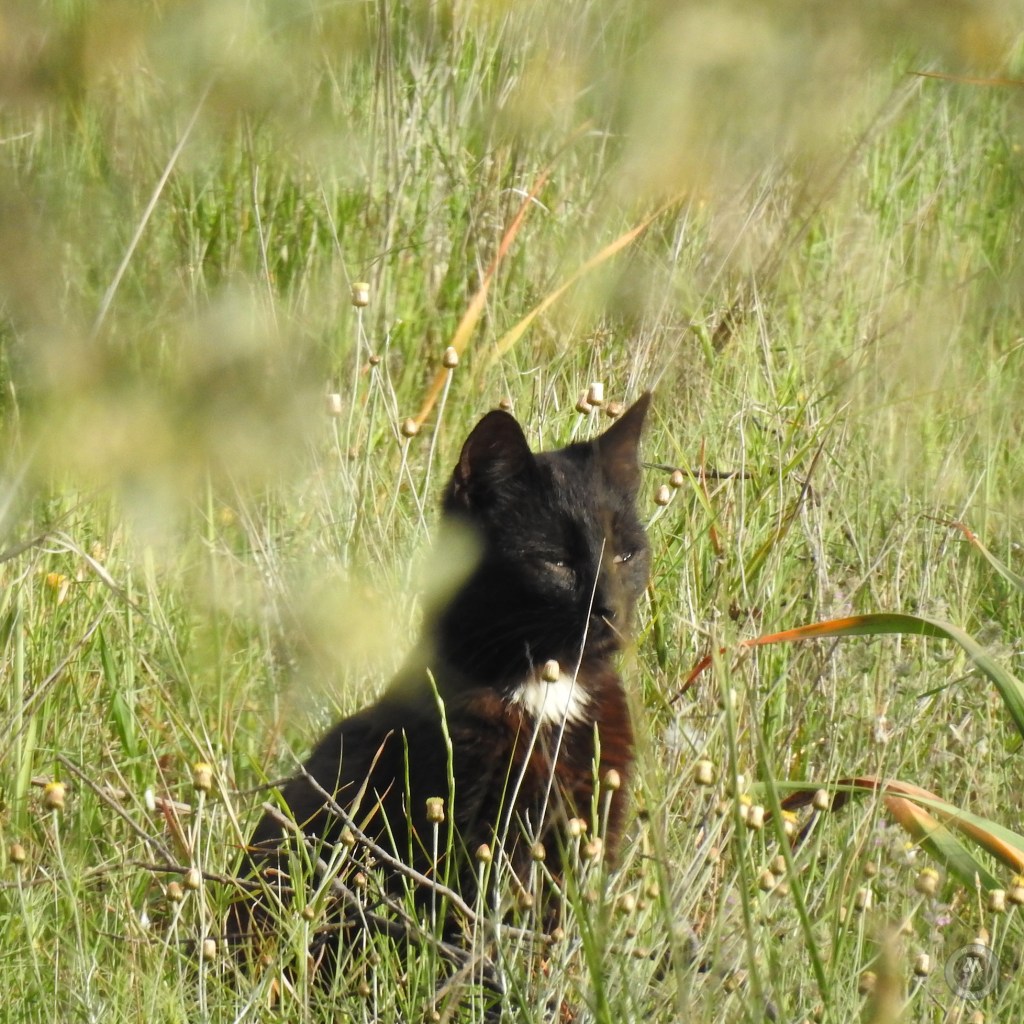 A ha ha haa… a goat-herding cat! She could be but, no, she was at a different time of the day on a different spot. She really was a sweetheart and she kept that position for quite some time, so much so that at first I thought it was a black rock!